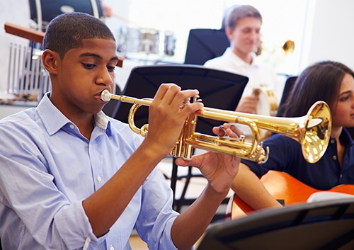 Brass instruments require mouthpiece pressure. This leaves your lips pressed between the mouthpiece and your braces. For this reason, many brass players have a more challenging adjustment when wearing braces. Smaller mouthpieces (trumpet, French horn) usually require more pressure than larger ones (tuba, trombone). It’s important to learn how to use technique to avoid cuts, irritation, and other injuries caused by the pressure of your braces against your lips. Learning to play with less pressure on the lips and more air control and breath support will help you to recover your tone and range of notes while protecting your lips and mouth.